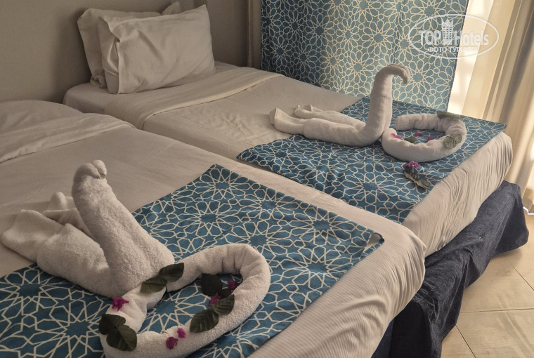 Отдых с 23 по 30 сентября .Начнём с заселения( в 20.30)У нас был оплачен стандартный номер , но с пожеланием одной кровати , так мы приехали с мужем. Заселились нас сразу же , но в семейный номер (2комнаты), где было 4 односпальные кровати. Первые мы не могли составить вместе потому что между кроватями был телефон и тумба. Вторые две кровати были просто разные и вместе составлять их возможности не было. Номер по чистоте был 50на 50 . Сантехника была вымыта, но все поверхности типа столов и туалетных столиков вымыты не были , были остатки тотального крема и пыль . Зеркала тоже не были чистыми. Мы попросили нас переселить, но нам сказали:-" увы ,номеров свободных нет" , приходите завтра. Переселяться на след день мы не хотели, раскладывать и складывать вещи нам было не удобно и мы остались в этом номере. На следующий день пришли с уборкой , мы их попросили вымыть столик испачный тональный кремом (это была наша ошибка ) они мыли стол какой то термоядерной химией . (Спойлел)стол пах 3 дня ,пока его не вынесли из номера . По номерам: номера уставшие , но все работало. Пополняли мини бар ежедневно + 2 воды по 2 литра . У нас был большой балкон с видом на соседнее здание . Кондиционер шумный. С коридора все слышно . Зато удобные матрасы и подушки , белые чистые полотенца