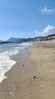 А вот заход в море...... Он естественный, природный, галечный! ) Чувствительные люди, берите аквашузы! Мы купили в магазине рядом с отелем, т.к. "массаж ступней" нам не понравился, а пирса в отеле нет!!! Что очень печально. Вот эти перила в воде без дна, т.е. ни досок там на дне, ни коврика антискользящего, никакого покрытия сверху камней! Просто поручень на камнях, что бы руками подержаться, когда волны по ногам бьют.