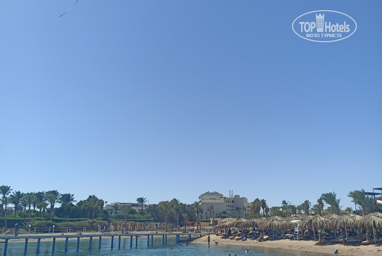 Небольшая, но компактная территория, много баров и бассейнов , которые расположены равномерно по всей территории, все везде рядом . На пляже есть зоны отдыха как на первой береговой линии, так и на пирсах по кругу, также с этих пирсов можно понырять.