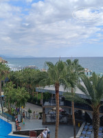 Отдыхали с мужем и ребенком 5лет, с 29.09-8.10. Прибыли в отель около 12, сразу не заселили, одели браслеты, сказали можно пользоваться услугами и сразу дали пароль от wifi. Около 14, подошли к рецепшн, ещё не готово. В 14:15, нас позвали заселяться. Молодой человек,взял наши чемоданы и проводил в наш номер, не уходил пока не дали ему чаевые 🤔. Увидев свой номер были в шоке, типо балкон находился в коридоре и мы видели дверь в соседний номер 🤣. Сразу схватили чемоданы и обратно, разбираться. Я бронировала с видом на окрестности, номер стандарт а не эконом. Сразу предложила другой вариант, тоже не бомбический конечно но получше, и мы не собирались находится в номере целый день, только спать. Балкон был с видом на крышу,а внизу кухня. Когда мы переезжали в другой номер,нам уже никто не помогал с чемоданами 😄. Номер нормальный, чай,кофе, чайник, кружки, стаканы, блокнотик для записей, карандаш, гели шампуни большые бутылки прикручены к стене, нажимаешь дозатор и все, маленьких не было бутылочек. Тапочки были одноразовые,халаты, полотенца. Сейф бесплатный в номере в шкафу. Так же было ватные диски, иголки -нитки в мини упаковке. Ложка для обуви. Дополнительные 2 подушки. Мини бар пополняли регулярно, если все успевали выпить. Если кола оставалась, то не дополняли ее а остальное все доступно. Постельное белье и полотенца, халаты нам меняли каждый день 👍, но мы оставили по 1-2 €. Отель понравился, территория компактная, все доступно. Есть горки водные, детские и взрослые. Нас немного разочаровало питание, в первые дни было изобилие еды, ребенок ел йогурты в баночках и пюре фрутовые были. Мясо рыба была несколько вариантов. Но с 1-2 октября все волшебное закончилось, детского питания не было, даже этот детский холодильник был выключен. Из фруктов были бананы,яблоки,груши деревянные, нектарины твердые. Арбуз и дыни не бомбические, ожидала большего. На завтрак не знали что поесть, глазунья -надо стоять ждать пока поджарят, омлет -очередь 15минут, вареные яйца всегда были, фри, нагентсы и луковые кольца во фритюре 24/7. Но на завтрак извините меня,я такое не хочу. Каша была один вариант и то, или с изюмом или с курагой или ещё чего насыпят. Колбасы и сыры много вариантов, и выпечки много и тесто вкусное. Сосиски были всегда в каком то томатном соусе, выглядит это ужасно. И не все любят такое. На обед тоже ходили в поисках еды 😀, много видов макарон,но опять же то в томате, то острое, то травы и специи какие то много. Рис с фисташками. Про супы я вообще молчу, какая то жидкость то молочная то томатная, то мутная 🤔. На ужин были рыбки, форель , скумбрия но они все были пересушены на мангале . Думала около моря будет разнообразие море продуктов , оказывается нет . Очень питание разочаровало. Слышала что конец сезона ,и особо уже не напрягаются. В снек баре еда была кстати вкуснее чем в ресторане . Потом ходили туда на обед ,пиццы, денер-курочка , лепешки, мороженое фрукты . Один раз посещение ресторана а ла карт, бесплатно. На выбор лосось, дорада, сибас. Сначала наливают рыбный суп, наваристый. Потом приносят рыбу, которую выбираешь заранее. И дессерт шоколадная масса, типа крем брюле что то. Анимация хорошая, но вот 2 дня была плохая погода все гости практически были в отеле и не знали чем заняться. То есть у них программы только для улицы. И в плохую погоду,к сожалению мы попали на 2 дня дождей, не 