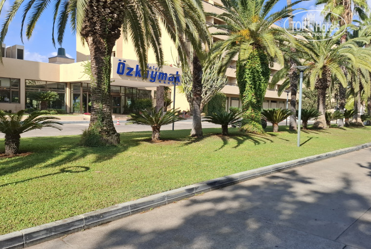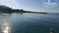 Пляж отмечен голубым флагом и имеет общую территорию для двух отелей сети «Özkaymak». Вход в море песок с мелкой галькой, поэтому проблем быть не должно. Встречаются плиты, но линяя плит ближе к пирсу. C пирса имеется спуск по лестнице