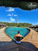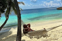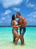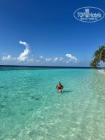 Резорт находится в океане в 50 минутах езды на лодке от Мале. Территория шикарная, зеленая, белый песок, прозрачная вода, разных цветов, красивые рыбы, ночью кормят акул, в районе 23.00 по местному времени на старом пирсе, фонарик есть в номере, зарядить можно самому или на ресепшн.На новом пирсе много рыб плавает вечером. Весь остров обходили кругом за 20 минут неспеша.
