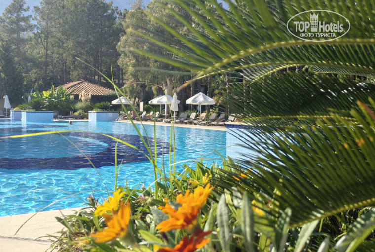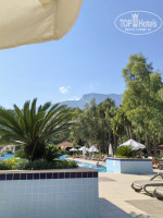 Территория прекрасная , зеленая , ухоженная . все утопает в соснах и пальмах . Есть несколько бассейнов . В описании заявлен бассейн с подогревом , его нет .