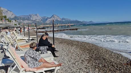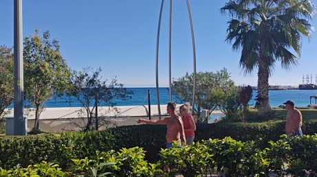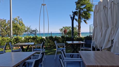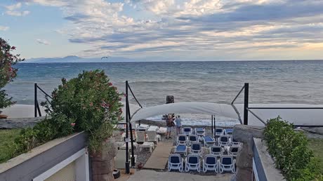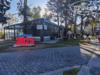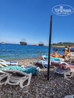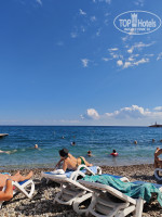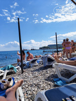Пляж через променад в метрах 50. На пляже нет ни душа ни туалета, заход в море неудобный. Пляж галька. Есть маленький пирс.