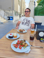 Еда. Вкусная выбор небольшой но всегда на все приёмы ПИЩи ХОЛОДНАЯ. ФРУКТЫ яблоки персики мандарины дыня виноград. Детского питания нет. Бар работает с 10 до 23 бесплатно джин водка раки вино белое красное (из бутылок) пиво. Территория нет территории.