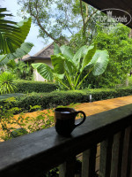 Отель состоит из одноэтажных бунгало, либо разделенных на 2 номера отдельно, либо один большой номер, так называемый deluxe. Домики и дорожки до них изготовлены из дерева, внутри тоже всё в стиле «под дерево» кровать, стол, шкаф...Смотрится потрясающе деревянное зодчество на зеленом фоне. Перед входом в номер есть своя небольшая терраса (2 стульчика и столик). Можно устраивать вечерние посиделки и утренний кофе. В номере расположена одна двух спальная кровать, туалетный столик, ниша для чемоданов, прикрученный длинный столик, на котором расположены чайные принадлежности (чай, кофе, сливки, сахар) и телевизор, под ним мини - холодильник ( 2 бутылки воды бесплатно), шкаф для одежды (имеются вешалки, зонты, сейф). Ванная комната с душевой очень просторная (шампунь, гель, фен, мыло, шапочка, ватные палочки). Полотенца меняют ежедневно, имеются в наличии полотенца для пляжа/бассейна. Домики не новые, но постоянно их реставрируют, проводят небольшой косметический ремонт.