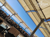 Ну вот и закончился наш отпуск и пока все впечатления не подзабылись , а так тоже бывает , делюсь с вами ) Начнём с классики - ездили с турфирмой TUI 8 ночей 7 дней , перелёт авиакомпанией туда Corendon ,оттуда Sun Exspress . Туда без опозданий, обратно была задержка рейса , но не критично . Итак , прилетели, опять долго ,долго ехали и долго долго ждали багаж , слава Богу всё было на месте , затем поход к тур. представителю и начался квест . Сообщили номер Трансфера , а на какой стоянке он стоит (хотя бы ) ищите сами , а там тьма тьмущая в 10-15 рядов и нескончаемо..... ну нашли , были последние , поехали. Трансфер хороший , чистый , быстрый заезд был ещё в один отель. Ехали примерно час . Приехали и тут весь мой настрой на позитив выветрился . Зашли , сразу Reception ,показалось всё мрачным (заезд был уже поздно вечером после 22 :00 ) Заселение сразу , помощь с багажом тоже присутствовала ,спасибо . Номер был на том же этаже , где и Reception ,но в другом строении , где можно перейти по крытому переходу . В коридоре ковролин ,думаю, чтобы шаги приглушить, но грязненький ,да и в течении отпуска его никто и не чистил, если честно . Номер был просторный , в номере большой вместительный шкаф , в нём сейф , одна односпальная кровать и одна двуспальная , где матрас был один и мы с него скатывались ))) , кресло дополнительно , плоский ТВ , есть русские каналы, но их очень мало 2-3 программы ,по -моему , немецкие, турецкие ,польские . У нас был плохой сигнал ,возможно, у кого-то и лучше . Столешница длинная -это плюс, чайный уголок- это двойной плюс , хороший балкон с сушилкой -это плюс . Вид с балкона на апельсиновые деревья внутреннего двора и на балконы соседнего корпуса отеля ( нам не мешало , зато ,тихо ) . Холодильник с мини баром ,который пополнялся ежедневно и в котором присутствовали - 2-3 водички с газом, 2-3 без газа , пара упаковочек сока . В ванной комнате от отеля душ гель , шампунь , две шапочки для душа , два мыла , фен (зверски гудящий и ничего не сушащий ,впрочем , как и везде ))) , душевая кабина -напор воды очень хороший , без перебоев , вода уходит хорошо , печальненькие сама арматура душа ,ну и аксессуары ванной комнаты , так скажем ,фото прилагается ) . Полотенца белые, без пятен , дырок и т.д. , постельное бельё без нареканий -всё отлично ,но обратите внимание, что в данном отеле укрываться нужно покрывалом но в шкафу есть толстые одеялки , которые можно кинуть поверх и будет вам счастье. Уборка ежедневно , смена полотенец тоже , всё по желанию ,будьте внимательны , если вы не меняете полотенца и они у вас висят в душевой, то уборщица может их все собрать и сложить стопкой на сушилку в ванной или сделать вам дизайн на кроватях и тогда никто не узнает , где чьё ))) ,лучше кидайте сразу на пол. Контролируйте количество полотенец при заезде и после их замены . Питание в данном отеле - ресторан основной , есть а ля карт рыбный ,турецкий -мы не были ,не могу оценить. На пляже ресторанчик Оливиа , где можно перекусить с 12 до 16 часов , есть бар на бассейне , бар в главном корпусе , где нужно спуститься вниз и там же внизу кондитерская -пирожные , мороженое, на баре кофе ,коктейли и т.д. . Питание - разнообразное и каждый ,думаю, нашёл себе то , чем он был доволен. Пекут гезлеме и пышки по дороге на пляж . Территория отеля очень компактная , вышел с отеля и сразу всё под рукой- бассейн, бары, сцена , гезлеме -пышки , ресторан на пляже , пляж , море ))) Т