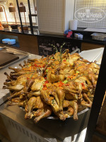 В отеле отличное питание, мясо на любой вкус- говядина, курица, ягненок, индейка, также постоянно есть морепродукты - рыба, мидии, осьминог и другие. Приготовлены по разному типу - на огне, отварные, жареные, запеченные. Выбор есть всегда и питание на хорошем уровне. Алкоголь только местный, пиво разливное.