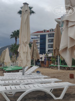 - Пляж. Он небольшой, но в конце сезона места хватало. Всё необходимое: лежаки, бесплатные полотенца, душ, имеется. Кроме раздевалки. Переодеваться придётся в номерах или в туалете по пути через столовую. Весьма неудобно.