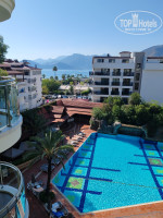 Летали в этот отель во второй половине октября 2025 года. Отель расположен недалеко от центра Мармариса, что создаёт прекрасные возможности для прогулок по городу. Территория небольшая, вытянутая, два основных корпуса. Пляж свой, маленький, но есть пирс с удобным входом в воду, с лежанками, подушками. Кроме того, на пляже есть столики, можно посидеть с напитком из бара. Пляж совсем рядом с отелем, через пешеходный променад. На территории несколько баров, спа-центр, игровое пространство, анимация по вечерам.