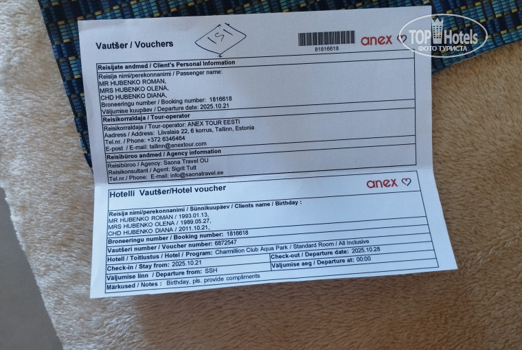 Оценка сервисов отеля автором