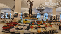 Рестораны основной Столица шведский стол в большом ассортименте мясные блюда из курицы,говядины и баранины ,отдельный зал с блюдами на гриле шашлычки,люля,рыбка вкусно.Овощи свежие ,маринованные нарезанные и целиком помидоры,огурцы,морковка,перец,капуста,оливки,маслины и другие.Любителям сыров и зелени,было из чего выбрать.Сладости всякие тортики и пирожные,в большом количестве разные виды пахлавы с разными начинками.Свежевыжатый сок был только апельсиновый,другие пакетированные.Очень много отдыхающих,отель был полностью заполнен,в ресторане не всегда официанты успевали убрать столы и положить чистые приборы,приходилось брать самим.Приятно порадовал ресторан Теремок работает 24 часа,удобно ,когда ресторан Столица закрыт,можно покушать в любое время ассортимент блюд как в основном ресторане,но более индивидуальный подход к гостям и вежливое обслуживание.