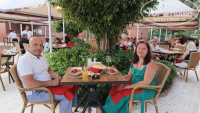 Турецкий на свежем воздухе ,живая музыка,очень хорошо пели про любовь на турецком.Вежливое обслуживание вкусная баранина на гриле,пахлава с мороженым пальчики оближешь.Очень рекомендую к посещению.Второй ресторан аля карт итальянский в красивом зале с высоким купольным потолком украшен фресками и лепниной.Под прекрасную классическую музыку в красивой посуде подавали изысканные блюда рыбку в соусе,салат Цезарь,закуски маслины,вяленые томаты,пиццу, и очень вкусный десерт тирамису.Все блюда понравились,съели с наслаждением.Очень внимательные и вежливые официанты подсказали что выбрать,прекрасные рекомендации по блюдам.Спасибо за вкусовые наслаждения рекомендую.