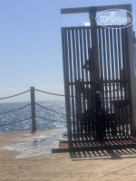 Вода которая задерживается на пирсе около душа, сливается в море и течёт по лестнице спуска к морю, из-за этого лесенки очень скользкие и в море присутствует мелкие щепки.Зонтики на пляже , это какой-то тяжёлый люкс , то из нужно перематывать мусорным пакетом, то они далеко не презентабельные.