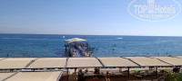 3. ПЛЯЖ. Бар на пляже так же с хорошим питанием, можно не ходить иногда на обед. Пицца все такая же вкусная, тут все без изменений. Удобный заход в море, но убрали из камней детский лягушатник. который был 2 года назад. Все так же ходят на пирс 2 соседних отеля, которые на второй линии и пирса у них нет. Женщина пыталась пару раз прохаживаться и не пускать на наш пирс посторонних, но это работает только в моменте, через минуту. как она уходила. опять на пирсе проходной двор. С этим все таки нужно что-то делать! Вот пирс Катамарана и Розы гарден охраняют и гоняют посторонних. Далее, 2 года назад кусались рыбки и их было больше. чем в этом году, не знаю. с чем это связано, с экологией или еще с чем, но рыб стало заметнее меньше. Морская крапива иногда пощипывала руки, ноги у буйков как и 2 года назад. Приятным бонусом было увидеть огромную морскую черепаху, проплывающую возле нашего пирса, когда была погода не очень и народ не купался, так что, черепаху мы видели у пирса 2 раза!!! Одинокий краб иногда ползал по дну у пирса между камней, кальмаров не видела в этот раз, а вот рыба-игла проплывала....были и бакланы у буйков, ныряли и ловили рыбу. Пляж отеля - это отдельная любовь моего сердца. Потрясающие восходы и вид на горы. Ну и солнце в этом отеле уходит за гору в районе 16:15 и на пляже становится прохладнее.