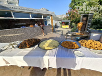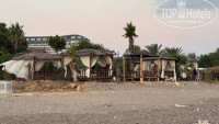 Пляж: сам пляж галечно-песочный, но гальки не большие, особо ходить не мешают. Пляж хороший и чистый, море замечательное..правда при нас 4 дня был шторм, и были очень сильные волны:(. А теперь что касается лежаков, лежаков очень мало, на весь отель не хватает. Есть такие люди, которые занимают по несколько лежаков, и не снимают с них полотенца весь отдых, а то и вовсе не приходят. Но с утра можно попробовать занять несколько лежаков в разных концах, а вот после обеда проблема...Так же можно снять бунгало за 5$/€ за день, но они немного ушатаные. Душ на пляже есть.