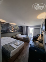 Приехали мы в отель в 9:30, заселили нас стандартно,в 14:00. Номер дали в первом корпусе, на 4 этаже с видом на кладбище (нас это не настораживало), всего в отеле 3 корпуса, и нигде НЕТ ЛИФТА, учитывайте это,при выборе отеля, т.к. за день много раз придётся бегать туда сюда. В номере было две односпальные кровати, холодильник(мини бар отсутствует, воду в пластиковых стаканчиках по 200 мл. можно взять в лобби или в ресторане),кондиционер, телевизор. Шкафчик, именно шкафчик, очень маленький. Туалет также не большой, мыло и гель был в дозаторах. Иногда слабый напор воды, а особенно горячей. Также, время от времени в кабине плохо уходила вода и пахло канализацией. Один раз было отключение воды и света на 2 часа. Т.к. уборка нам не требовалась, не могу сказать по поводу смены белья, а полотенца мы просили сами.