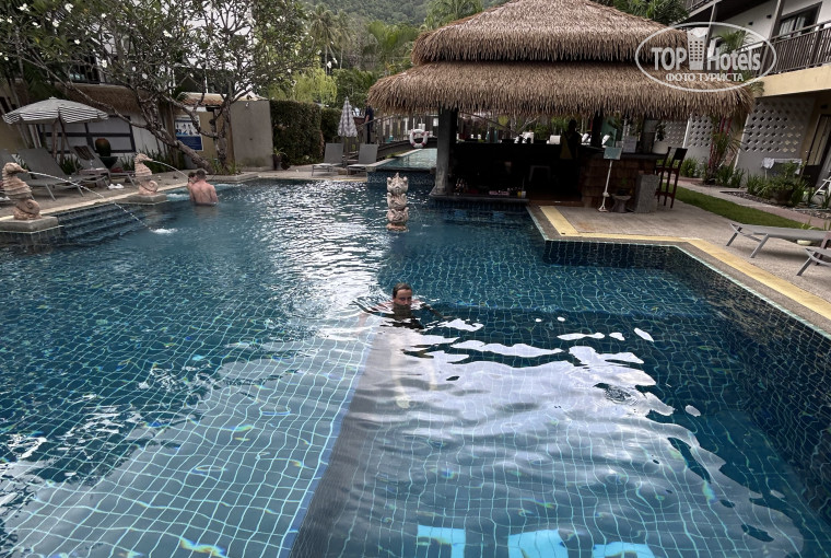 Нам отель понравился. На третьем этаже, с видом на бассейн. В номере все необходимое имеется. Телевизор, кондиционер. Очень порадовала третья кровать, в прошлую поездку, в другом отеле, нам предложили ее за деньги. Регулярная уборка. Вода. Ежедневная замена полотенец.Вежливый , не назойливый персонал. У нас были завтраки, очень сытные и вкусные. Всегда были фрукты. Очень прикольный аппарат по выпечке оладушек, не видела еще таких )))В какое -то время соскучились по привычной еде, нашли пельменную рядом, кафе Учкудук))В баре у бассейна, сыну «зашли» сэндвичи с тунцом. Музыка на баре была больше русская. Вкусные коктейли. Ну уже за дополнительную плату разумеется. Есть детский бассейн. Джакузи. Основной. Место у бассейнов всегда можно было найти. Зелень присутствует на территории. В пешей доступности пляжи Ката и Карон. Через дорогу кафешки. Правда движение оживленное. Пешеходных нет ,светофоров тоже нет рядом. На стороне отеля, если спускаться вниз к пляжу Карон и на лево с дороги, хорошее кафе, просторное. Порции приличные и цены. Несколько раз туда ходили.Рядом с отелем автобусная остановка. Палатки с фруктами. 7/11. По дороге на пляжи тоже полно кафе, магазинчиков, массажных салонов.