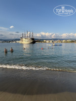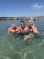 И третий на общем пляже с краю.Мы туда сходили один раз.Там очень много людей-как в Анапе.Но как раз с краю,где зона отеля там мало людей и плавают рыбки,скаты и бегают крабы.Берите маски и рассматривайте.