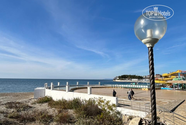 Расположение тоже удачное — в тихом месте на возвышенности, вдали от городского шума. До моря пешком около 15 минут по улице Черноморская. Есть трансфер, что очень удобно.
