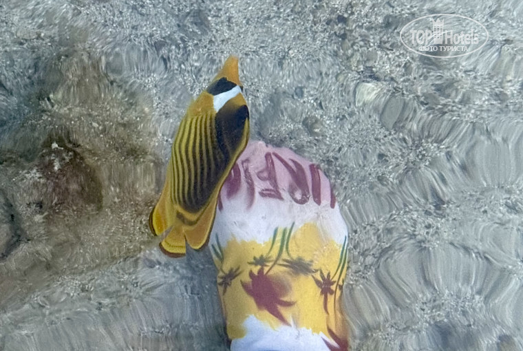 Пляж: есть понтон с красивым рифом. Из-за приливов и отливов понтон чаще всего открыт после обеда, но бывали дни, когда он был открыт и в первой половине дня. С надувным спасательным кругом плавать нельзя, поэтому если ребёнок плохо плавает (а течение там сильное), то нарукавники или спасательный жилет. Берите с собой маски для подводного плавания.