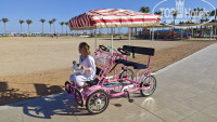 Территория отеля ухоженная, просторная и зелёная. Много мест отдыха для взрослых и детей, удобные шезлонги и зонтики прямо возле бассейна и пляжа. Очень понравились детские площадки и анимационные программы. Днем можно бесплатно покататься на четырехколесном велосипеде, а так же научится стоять на доске на искусственной волне.