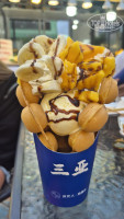 Есть часто ходили на рынок- очень понравилось разнообразие и доступность креветок, кальмаров... дети оценили жареные пельмени со свининой. В кафе тоже ели, понравилась Панда. Утку пробовали.