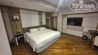 Номер в отеле очень большой, на 4х человек: двуспальная кровать и 2 односпальные. В номере свежий ремонт, комфортная зона ванна-душ-туалет, стиральная машинка. Куча индивидуальных принадлежностей, хорошие шампунь и кондиционер, халаты, сланцы, пляжная сумка. Чего в номере нет: никаких тарелок, ножей, вилок, ложек. (мы брали Фрукты в номер, с собой везли складной нож). Мало полок или ящиков для одежды. Но на 4х в итоге разместились... у нас был номер 1571 с шикарным видом на море, сделала фото расположения номеров. Наш номер на 4х называется у туроператора SELECTED FAMILY FLAT 4 PAX (AREA Ⅰ) 55 кв.м