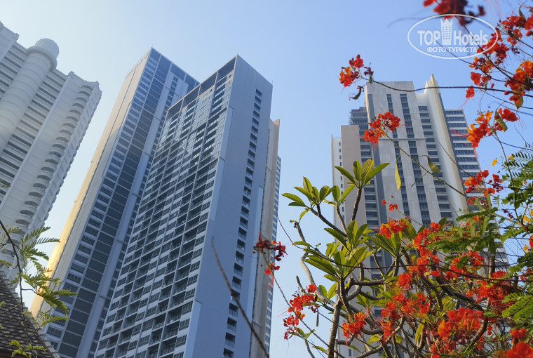 Отель выбирали по отзывам. Давно хотели остановиться в Северном районе Паттайи. Привлекает относительная близость от центра и северный пляж Вонгамат. Очень большой контраст нашего зеленого отельчика с рядом стоящими огромными высотками.