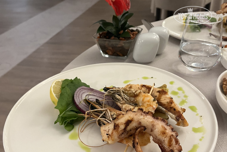 Территория отеля большая, зелёная, ухоженная, с апельсиновым садом. Это необычно и явно выделяет отель из ряда его конкурентов. Пляж идеальный-песок, широкий, хорошо оснащённый. Питание достойное-рыба, морепродукты, вкусные сыры, итальянская паста.