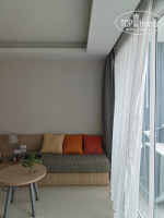 Отдыхала одна. Для меня всего хватило в номере. Есть чайник, маленький холодильник (нормально работал), телевизор (русских каналов не было), фен, пляжные тапки, огромный зонт. Балкон, правда,очень маленький, и половину его занимает наружний блок кондиционера. Вещи сушить негде.
