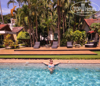Впечатления. Скромно. Относительно просторно, где то небезопасно. Кровать и изголовье из каменного материала, не раз стукалась. Микроскопические муравьи везде, и даже в чайнике. Если очень с широко открытыми глазами смотреть, то видна и паутина за старым окном, и шторы которые не стирали 10 лет, потолок с затиркой, как будто забыли доделать. Сама территория как будто давно просит реноваций, неухоженный вид у домиков, столы и стулья облупились, под попу стелила свое дежурное полотенце. Покрытие у бассена прилипает к ногам и тянется в номер. Огорчает что отель не обновляет свои фото. По сути это обман. Решающей точкой при выборе отеля был потрясающий вид с бассейна. Вид на гору/скалу давно не такой и наполовину закрыт импровизированным травяным забором, за которым находится ночной базар (Blűe Moűntain market) со сценой и живой музыкой, неделю мы слушали американскую классику.