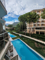 6. Номера — просторные. Мы жили в 1 корпусе — он после реновации. Интерьер номеров выполнен в светлых тонах, кровати с шикарными высокими матрасами, подушки разной жесткости. Балкон с мебелью, сушилкой. Есть халаты, тапочки, мыльные принадлежности, чай и кофе. Мини бар бесплатный и пополняется ежедневно соком, лимонадами, пивом. Дополнительно спальное место — тахта (ее длинна порядка 1,8 м, поэтому, если третий взрослый высокий человек, то лучше рассмотреть другую категорию номера или уточнить о возможности поставить доп. Кровать). Мы жили на 3 этаже с видом на соседний отель — вечером будет шумновато от анимации в нем, и возможен запах от гриля. Нам было не критично, но нужно учитывать этот нюанс. Зато вид также открывался боковой на море и горы — супер! В 1 корпусе на 1 этаже размещены номера swim-up. Бассейны просторные, террасы номеров оборудованы шезлонгами, но, нужно учитывать, что эти номера также смотрят на соседний отель и возможно, гостям не зайдет вечерний запах гриля и шум анимации Akka Alinda. Получается, не так приватно в этих номерах. В целом, номер приятный и комфортный для отдыха.