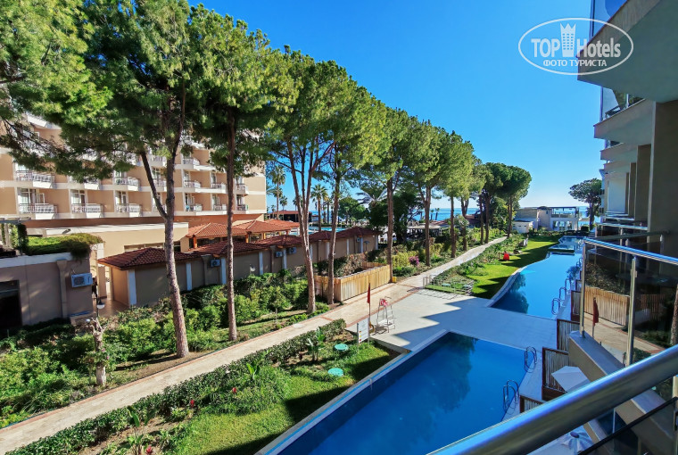 1. Отель расположен в п. Кириш региона Кемер — здесь красивая природа: горы, покрытые густой растительностью, лазурное море, потрясающие виды. Пляж отеля отмечен голубым флагом, что свидетельствует о чистоте моря и береговой линии. Сам пляж мелкогалечный, есть песчаная зона для игры в волейбол. Пирс с шезлонгами. Пляж большой, с деревянным настилом-дорожками. Заход в море мелкогалечный, глубина нарастает резко. 4-5 метров от берега уже метра 2 глубины. Море чистое, без волн.