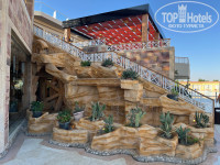 ОТЕЛЬ И ТЕРРИТОРИЯ. Понравилось сразу: большой просторный ресепшн (гранит и мрамор, светлая плитка), далее в таком же стиле лобби бар и ресторан а-ля карт. При выходе из ресепшен по лестнице, под которой находится фонтан, начинается большая благоустроенная территория с бассейнами, великолепно ухоженной растительностью - на радость любителям флористики. Под ресепшн находится основной ресторан (столовая) куда ведет внутренняя лестница тоже с органично вписанным фонтаном.