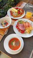 Завтрак/обед/ужин: безлимитный копчёный лосось, много фруктов и ягод, десерты со свежими ягодами, свежая выпечка, паста в головке пармезана.