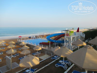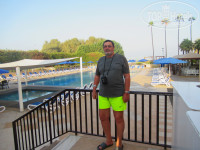 Это – главная «фишка» отеля. Именно из-за него сюда соотечественники приезжают по несколько раз. Пляж очень чистый, песочек бархатистый, вход в море пологий, водичка прозрачная, мусора в воде нет. Красота! Слева пляж ограничен 100-метровым волнорезом, в результате чего образуется небольшая бухта. Размеры зоны для плавания, ограниченной буйками, 150 на 100 метров. Заплывать за буйки строго запрещено (дежурят постоянно 2-3 спасателя). Лежаки все новенькие, удобные. Их всем хватает, но мы с женой по «вредной» привычке (приобретенной в Турции и Египте) ежедневно в 7.00 резервировали «козырные» места на первой линии для нас и друзей (они – сони).