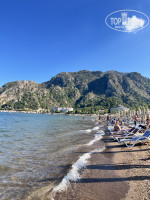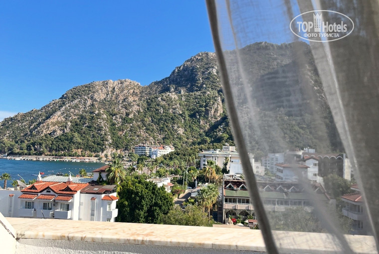 Отель находится в удивительно красивом месте. Пляж у отеля хороший, лежаков много. Пляж через променад. Питание отличное, всё вкусно. Всем с кем общались питание хвалили. Мясных блюд было много, также рыба и овощи и фрукты были в достатке, десерты тоже понравились. Большинство отдыхающих были иностранцы , также местные , но из России тоже было много туристов. Номер дали с видом на море. Единственное уборки в номере было недостаточно, видимо , не успевали, но воду докладывали и меняли полотенца. Отель подойдет для спокойного пляжного отдыха. Мы ездили в Мармарис на местной маршрутке, ездит часто проблем нет. Также, на водном такси съездили в Турунч. Также, отсюда было удобно уезжать на экскурсии. Понравилась набережная, которая тянется до самого Мармариса. Предвзятого отношения к россиянам не заметила. Вид из номера завораживал: на горы и на море.