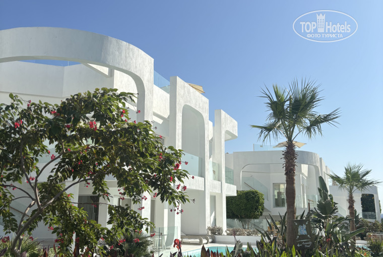 Территория в греческом стиле, все белое, эстетичное, красивое. Есть три бассейна: спокойный, где не слышно музыки, основной где проходят разные спортивные мероприятия и вечеринки, и вип бассейн, были там несколько раз, открывали для всех во время вечеринок в стиле бохо.