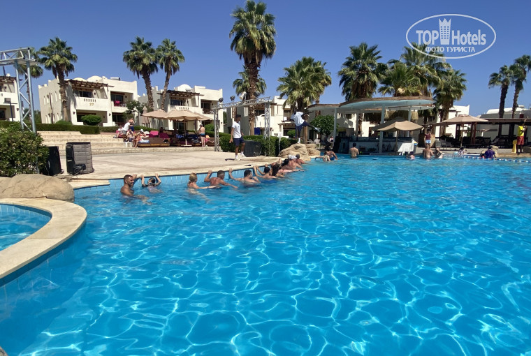 Территория отеля очень ухоженная и красивая, много зелени, бассейны чистые, места хватало всем. Особенно порадовал аквапарк — горки классные, катались каждый день и получали море эмоций. До моря идти совсем недалеко, пляж удобный, заход в воду комфортный, есть риф с красивыми рыбками.