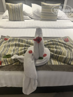 Заселение прошло быстро. Персонал очень доброжелательный, во всем помогают. Номер с видом на море, оказался просторным. В номере есть мини-бар, каждый день проводится качественная уборка и искусство из полотенец на кровати.