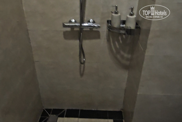 Сам душ огорожен душевой пленкой и уже с плесенью. Когда принимаешь душь весь унитаз мокрый, т.к. он находится при закрытии шторки на территории душа. В связи с чем, пол вокруг унитаза постоянно мокрый и использовать его не очень приятно, приходилось ставить ноги в лужу.