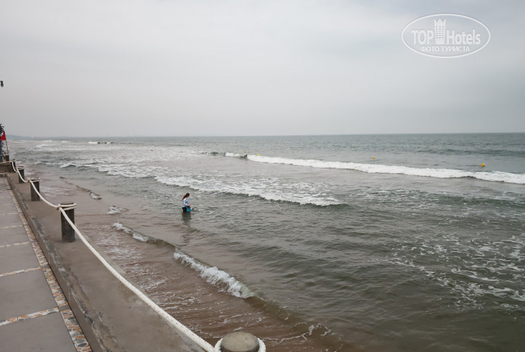 Пляж песочный чистый заход в воду очень пологий, с детьми комфортно. Береговая линия узкая, когда волнение на море волна доходит до ограждения.