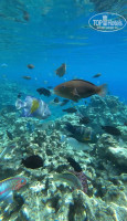 Море шикарное, оно невероятно красивым цветом,есть маленькие коралловые островки,можно плавать с маской,приплывали скаты (голубой и огромный черный,осьминог,мурены, морские змеи,куча рыб разных), с торца есть коралловый риф,но там можно плавать когда нет волн,с волнами страшно и опасно,так вот там просто невероятные виды,нереальное количество красивых рыбок.