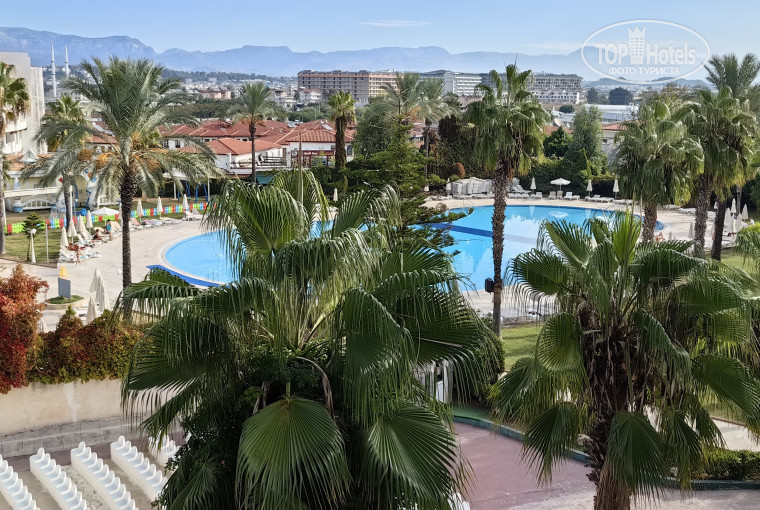 Отель нам очень нравится. Первый раз ездили 28 мая 2024г.на 10 дней. Решили узнать отдых в Турции в октябре, под занавес в данном отеле. Море,обслуживание, питание все супер. Хочу рассказать о погоде. Пару дней был дождь, не критично. Погода в целом комфортная, 27 тепла днем,солце ласковое, не жарит, но загар хороший. После ужина ходили гулять в футболках, кофта не пригодилась. Море каждый день разное, бывали волны и чтобы окунуться, приходилось привыкать к воде. В некоторые дни море было, как парное молоко, очень тёплое. В любом случае все купались. Заход пологий, камней нет. На пляже тепленький, мягкий песочек. Широкая береговая линия. Шезлонгов хватало всем. Отель был полностью загружен гостями. Много немцев, белорусы и русские. На пляже и в отеле анимация. Волейбол, боча, аквагимнастика, стрельба из пневматики и вечерние шоу. Вечером точно была анимация для детей. До пляжа от основного корпуса 5 минут ходьбы, спуск к морю по лестнице, но есть пандус для колясок. Номера чистые и просторные. Уборка без претензий. В холодильнике бесплатно в бутылках 0,3 кола, фанта, минералка, 0,5 вода, кофе и чай в пакетиках - все пополняется ежедневно. В ванной шампунь, бальзам, гель тоже пополняют. У нас был номер с видом на бассейн и анимацию, которую смотрели с балкона или из окна. Вечером из номера очень красивый вид на город. Вайфай идеальный в номере и ловит на территории отеля и пляже. Смотрели в номере фильмы без зависания. Рядом с отелем много магазинов, торговых центров кафешек, аптек. Можно доехать до старого Сиде на долмуше. В пяти минутах ходьбы Мигрос. Территория отеля не большая, но уютная. Прикольные горки для детей. О питании можно петь дифирамбы. Повару респект. На наш вкус приготовлено супер. Каждый день несколько блюд из говядины жареной, тушеной, с соусами и и без, баранина, рыба дорадо, тунец, форель - гриль, тушёная и обязательно малосоленая (вкусно с пивом), пицца, паста, бургеры. На завтраки каши,омлет, яйца, блинчики и не только. Еды полное изобилие на любой вкус. Огромный выбор фруктов и выпечки. Есть детское меню. Мороженое в ресторане на обед и ужин, днем на территории отеля. Особенно подкупает трапезничать на огромном балконе с видом на море. Несмотря на большое количество гостей, столов всем всегда хватало. Хочу ещё отметить, что мы уезжали за 4 дня до закрытия отеля на зимний период, в обед уехало 200 человек, на ужине нас было не многочисленно, но выбор блюд и разнообразие остались на том же уровне. Отель однозначно рекомендую. Расположение, питание и море - это большой плюс отелю. Соотношение цены и качества. Нам все очень нравится. Уже забронировали путёвку в Цезарь на 27 мая 2026г.