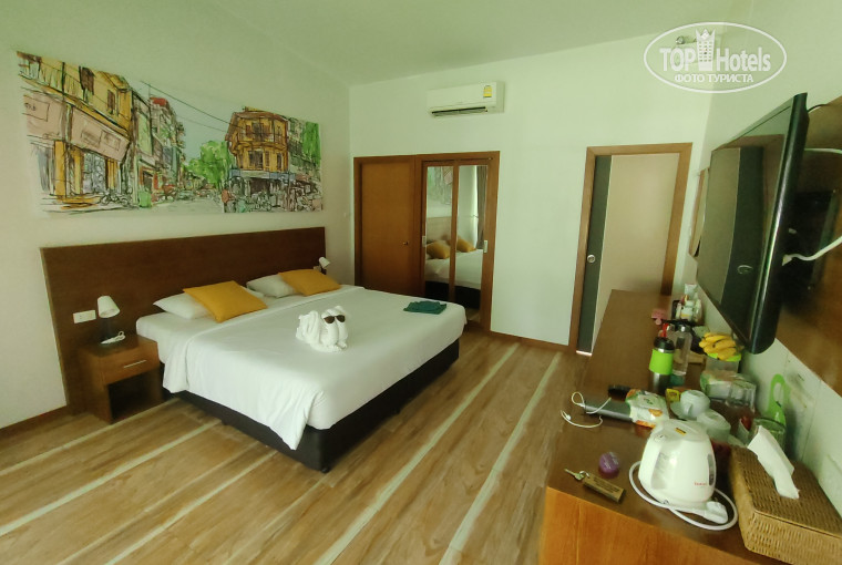 Отдыхали в этом отеле с 2 по 17 ноября 2025г., в отель приехали ровно в 14.00, заселения ждать не пришлось, депозит при заселении 500 бат, при выезде вернули без проблем. Номер Делюкс с балконом, по факту терраса, очень удобно, довольны своим выбором. Номер очень просторный, душевая, туалет, комната для багажа (я ее так назвала), в номере есть все необходимое - огромная кровать, телевизор, чайник, посуда, холодильник, сейф, зонтики, ежедневно 2 бутылки воды, уборка по просьбе, просто повесьте нужную табличку. Персонал вежливый, все просьбы решают, за 2 недели не возникло никаких проблем, однажды после уборки не положили полотенца, сходили на ресепшн, все выдали. Бассейн на территории небольшой, чистый, горка для детей и лягушатник тоже для малышни, которой к слову в отеле не было))) Расположение отеля идеальное, тихая улица, рядом 7/11, кафешки, аптеки, до Патак роуд 5 минут неспешным шагом, до пляжа Ката 15 минут. За такую стоимость просто шикарно, по возможности приедем ещё.