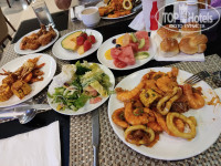 В отеле два ресторана, (они называют буфет),питание достойное, у нас был завтрак и ужин. На ужине всегда говядина, курица, рыба жаренная. Три раза в неделю тематические ужины с танцами и музыкой от персонала с ресторана, поздравления именинников с шампанским и тортиком. Кофе , чай, напитки, вода в ресторане доступны.