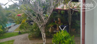 Приехали в отель поздно вечером, высадили нас у главной дороги, т.к. большому автобусу сложно проехать по узкой дорожке к самому отелю. На улице уже было темно - кроме самой вывески с названием ничего толком не подсвечено. Шли по темной дорожке и было страшно - куда же мы попали)) рядом явно вода - что-то квакает, чирикает, жужжит.....Но как только подошли ближе к отелю - там фонарики, гирлянды (дело было во второй половине декабря ближе к новому году) - светло, чисто, аккуратно и совсем НЕ страшно)). Номер у нас был сразу справа от входа- отдельно стоящее здание. Веранда (два стула, стол, сушилка для вещей - все под навесом, дверь большая раздвижная, стеклянная). Сам номер для троих человек вполне просторен, есть телевизор, холодильник, одна большая кровать (двуспальная) и одна обычная (нас было трое - сын 11 лет и родители). Все чистое, свежее.