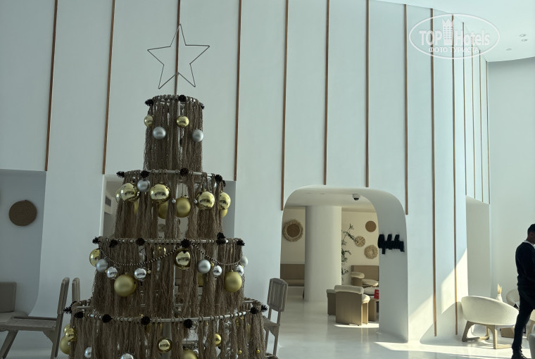 Территория отеля просто потрясающая — белые здания в греческом стиле, пальмы, аккуратные дорожки, красивые зоны для отдыха и фото. Даже в декабре здесь очень уютно: днём тепло и солнечно, вечером свежо, но комфортно. Бассейны подогреваются, поэтому мы с удовольствием купались каждый день. Есть как спокойные зоны для релакса, так и более оживлённые с музыкой.