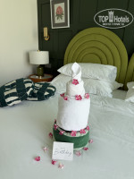 НОМЕР не очень просторный,но с интересным дизайном и потрясающей кроватью. Белоснежное белье и полотенца. Выход к бассейну понравился. Плавали и вечером. Из недостатков : Шумный кондиционер, присутствуют комары, некуда повесить полотенца, нет мыла для рук.